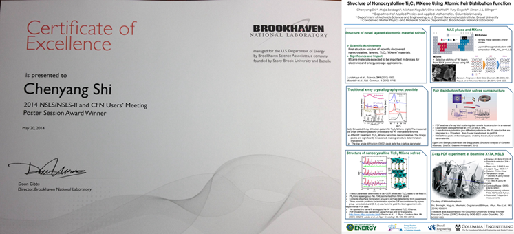 Current group member Chenyang Shi won the poster presentation contest at 2014 NSLS/NSLS II and CFN Users’ meeting. A total of 38 posters were in the contest with only 3 winners chosen as standouts.