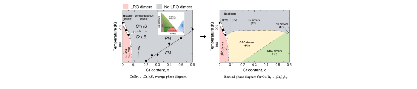 anding of the physics behind the properties of the MIT in Cu(Ir1-xCrx)2S4 is obtained by studying the local structure and generating a local phase diagram, as opposed to the more usual average phase diagram. This has translational importance as other complex electronic systems such as high temperature superconductors are likely to have similar behavior. High data throughput x-ray PDF beamlines coupled to the large number of high quality samples allows observation of nanoscale competition and presence at low temperature of Ir4+ short range ordered dimers, phenomenology that couples to the transport properties, which escaped detection of the average structure probes. Similar principles are expected to operate in the strongly correlated electron systems.