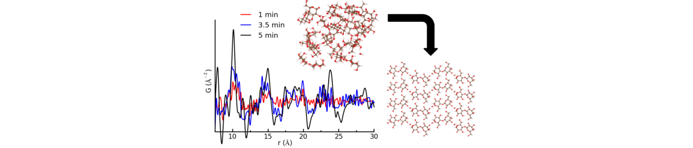 In a recent report, we have used the total scattering pair distribution function (TSPDF) technique to study the effects of processing on the product structure and kinetic behavior of different formulations of amorphous lactose. Lactose is a popular excipient (drug carrier) and tabletting agent for a wide variety of pharmaceutical products. We have demonstrated a wide variety of uses for TSPDF on pharmaceutical products such as product/formulation fingerprinting, phase quantification, and observing kinetic behavior. We are not only able to see the different structures that form during the recrystallization process, but also observe subtle structural differences in local molecular ordering that may underpin the very stability of the products.