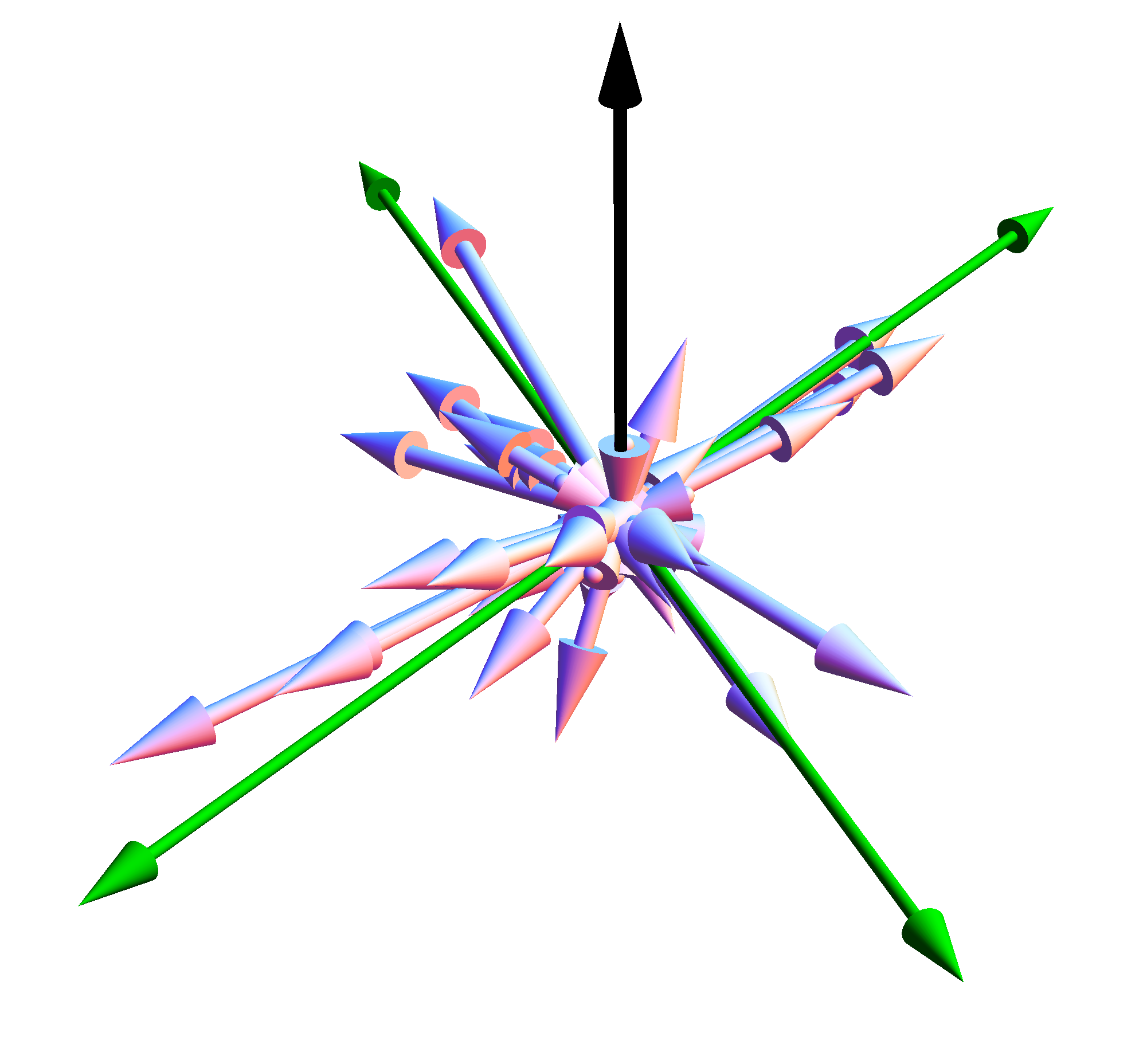 The result of repeated mPDF refinements of the magnetic structure of MnO, showing a clear preference for the spin axis to align along specific directions in real space.
